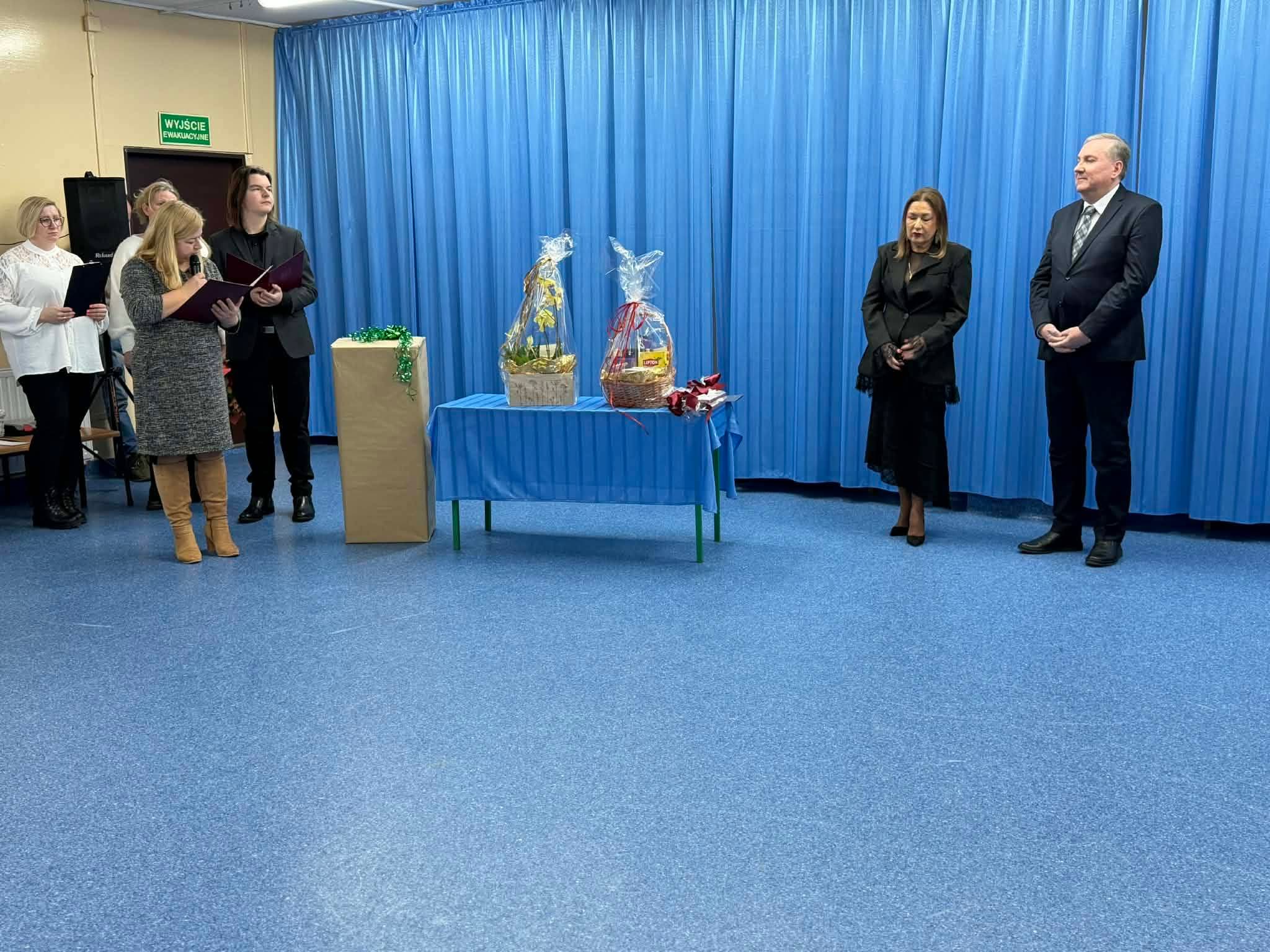 Dzisiaj w naszej szkole odbyło się uroczyste pożegnanie dyrektora szkoły – pana Wojciecha Helaka oraz pani Tamary Zych – nauczyciela biologii i przyrody, którzy odchodzą na zasłużoną emeryturę. W imieniu Społeczności szkolnej pana Dyrektora i panią Tamarę pożegnali: wicedyrektor szkoły – pani Daria Borkowska, przedstawiciele Rady Rodziców – pani Karolina Jaskulska i pani Sława Kroczyk, a także przedstawiciele Samorządu Uczniowskiego. Wśród wielu słów podziękowań za wspólne lata były również łzy wzruszenia. Pozostaje nam życzyć zdrowia, spokoju, pogody ducha i samych miłych chwil na emeryturze.
